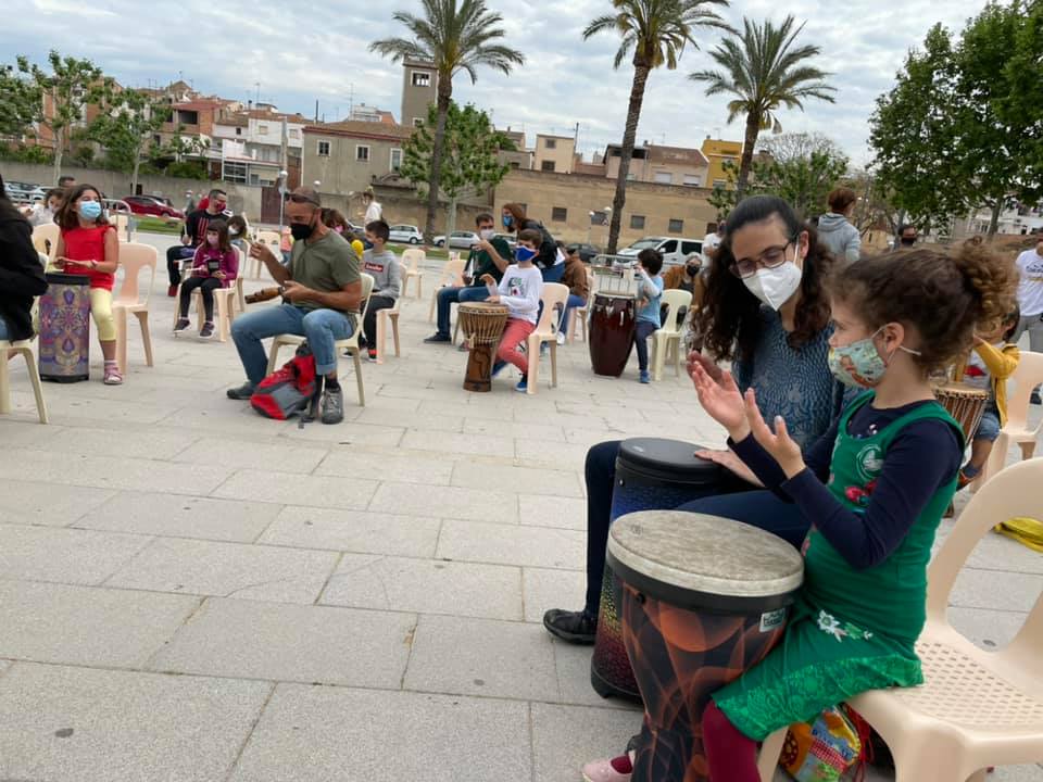 Cercle de percussió al espai inclusiu de la festa major del Casc Antic